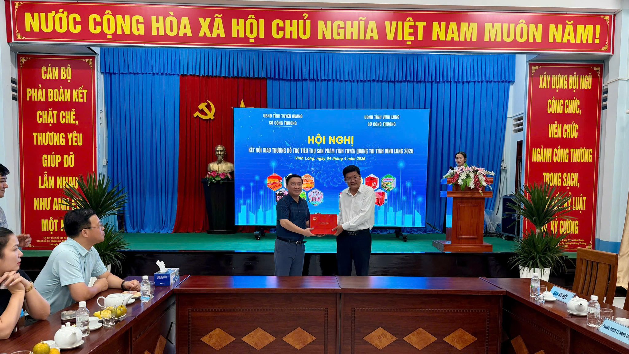 Chiều 4-4, tại tỉnh Vĩnh Long, Sở Công Thưởng tỉnh Tuyên Quang đã tổ chức hội nghị kết nối giao thương hỗ trợ tiêu thụ sản phẩm giữa hai tỉnh Tuyên Quang và Vĩnh Long. Dự hội nghị có lãnh đạo Sở Công Thương hai địa phương cùng đông đảo doanh nghiệp, hợp tác xã và cơ sở sản xuất kinh doanh đã tham dự, trao đổi và tìm kiếm cơ hội hợp tác.