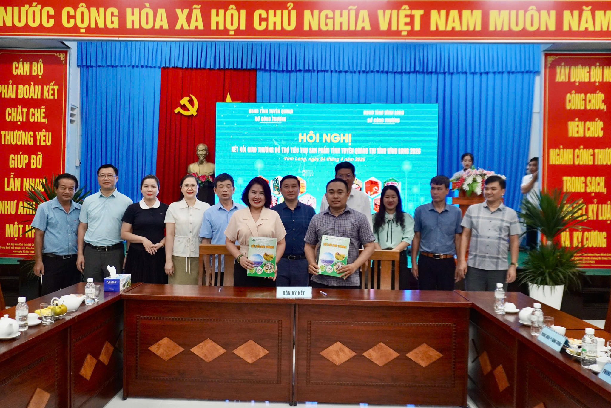 Trong khuôn khổ hội nghị đã diễn ra hoạt động ký kết biên bản ghi nhớ hợp tác giữa các doanh nghiệp, hợp tác xã và đơn vị phân phối của hai tỉnh Tuyên Quang và Vĩnh Long. Nội dung ký kết tập trung vào việc thiết lập kênh tiêu thụ ổn định cho các sản phẩm nông sản, đặc sản địa phương; hợp tác cung ứng hàng hóa vào hệ thống siêu thị, chợ đầu mối và sàn thương mại điện tử; đồng thời cam kết phối hợp trong quảng bá, xây dựng thương hiệu và nâng cao chất lượng sản phẩm.
