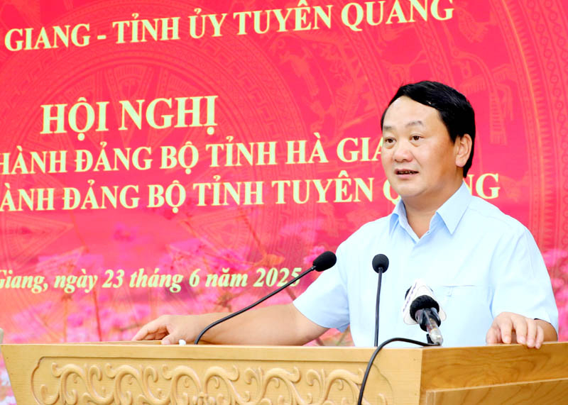 Chiều 23.6, Tỉnh ủy Hà Giang và Tỉnh ủy Tuyên Quang tổ chức Hội nghị trực tuyến BCH Đảng bộ tỉnh Hà Giang và BCH Đảng bộ tỉnh Tuyên Quang, để thảo luận về: Báo cáo chính trị của BCH Đảng bộ tỉnh Hà Giang và Tuyên Quang trước và sau khi hợp nhất 2 tỉnh. Cho ý kiến vào các đề án, dự thảo về sáp nhập hai tỉnh và một số nội dung quan trọng khác…
